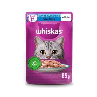 Ração Úmida Whiskas Peixe ao Molho Gatos Adultos Castrados 85g